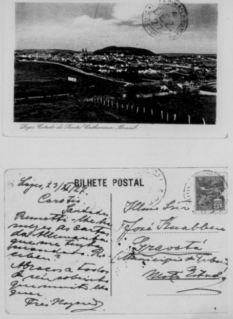 Frei Naz?rio tinha contatos frequentes com Jos? Knabben, autor da carta contando a vinda dos Knabben da Alemanha, tanto que de Lajes enviou um cart?o postal da cidade, com os seguintes dizeres: