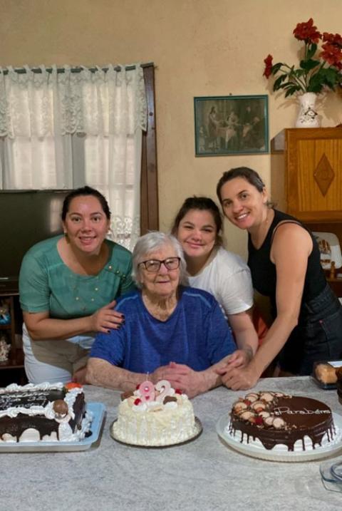 Sibila, 92 anos, com as netas, Edna, Renata e Carla