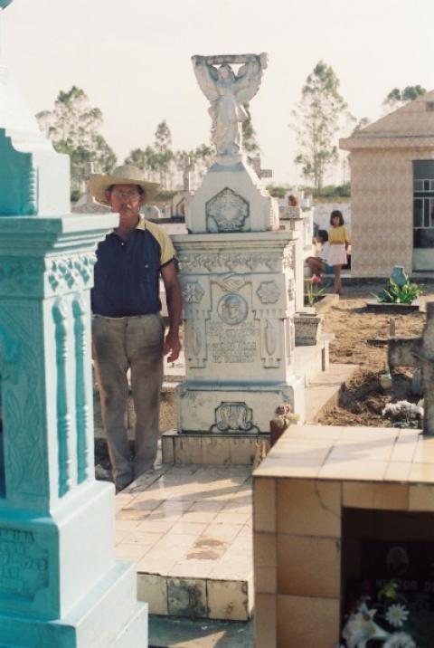 T?mulo de João Francisco e de seu filho, Manoel João de Vargas, no cemit?rio de Nova Fátima, S?o João do Sul/SC, 30-10-1993 Obs.: o sr ao lado do t?mulo, ? o zelador do cemit?rio