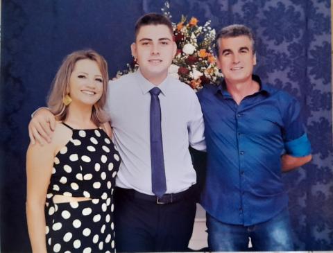 Vitor com a m?e e padastro, Gilberto Senna da Rosa
