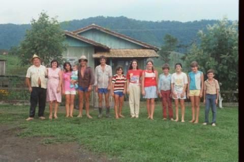 Longino e Alair com fam?lia, dez 86 Longino,Alair,Valdir,Valdelir,Volnei,Valmir,Maria de Lurdes,Marlise,Terezinha,Marlene e Roseli