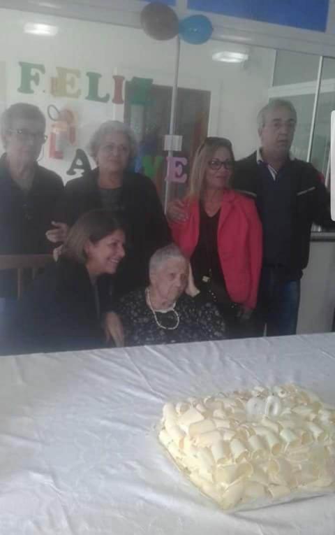 Yolanda nos 90 anos com os filhos, out 2015