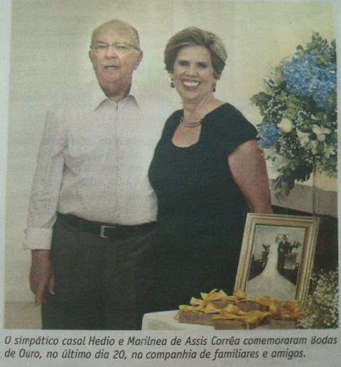 Hédio e Marilena, boda de ouro, fev 2015, acervo Jornal Página 3 de 28-2-15