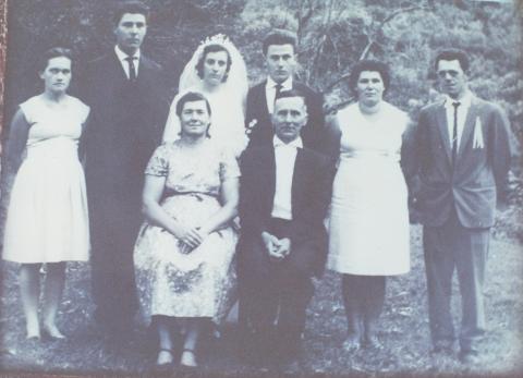casamento, abr 67. Atelina e Sifrido, Edi e Hilberto, Lilli e Walter, L?dia e Alberto (sentados)