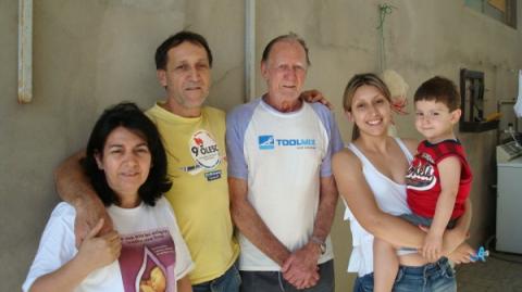 Alm?ria e Jorge, o sogro, Alfredo e filha, Caroline com o neto, João Pedro